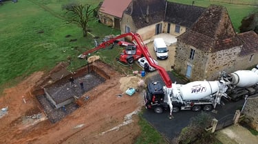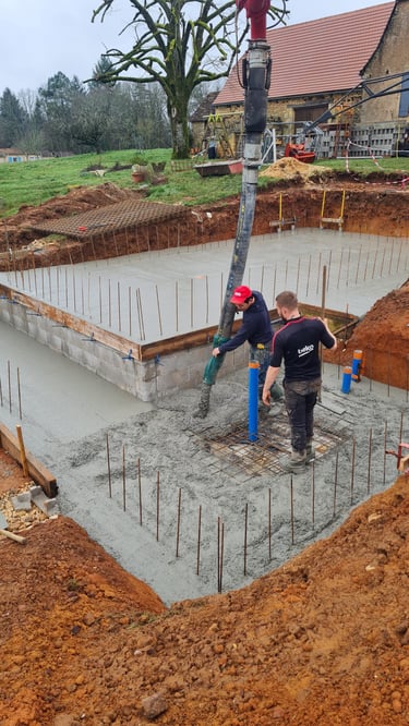 Coulage de dalles béton, création de terrasses, murets de clôture et piliers de portail pour aménager vos espaces extérieurs.